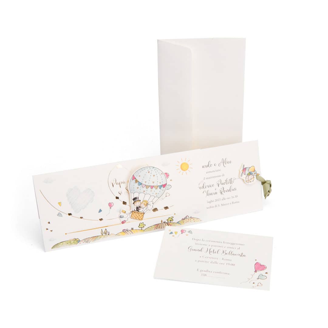 Puoi completare la personalizzazione del tuo giorno più bello aggiungendo alla partecipazione anche altri articoli come puoi notare nel corso della personalizzazione (menù e segnaposto, tag scintille, cartiglio bomboniere, matita piantabile, libretto liturgico).