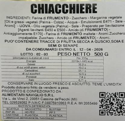 Deliziose chiacchiere artigianali, preparate secondo la tradizione italiana con ingredienti semplici e di alta qualità. Sottili, fragranti e con bustina di zucchero a velo da spargere sopra come neve, sono il dolce perfetto per Carnevale… e non solo!